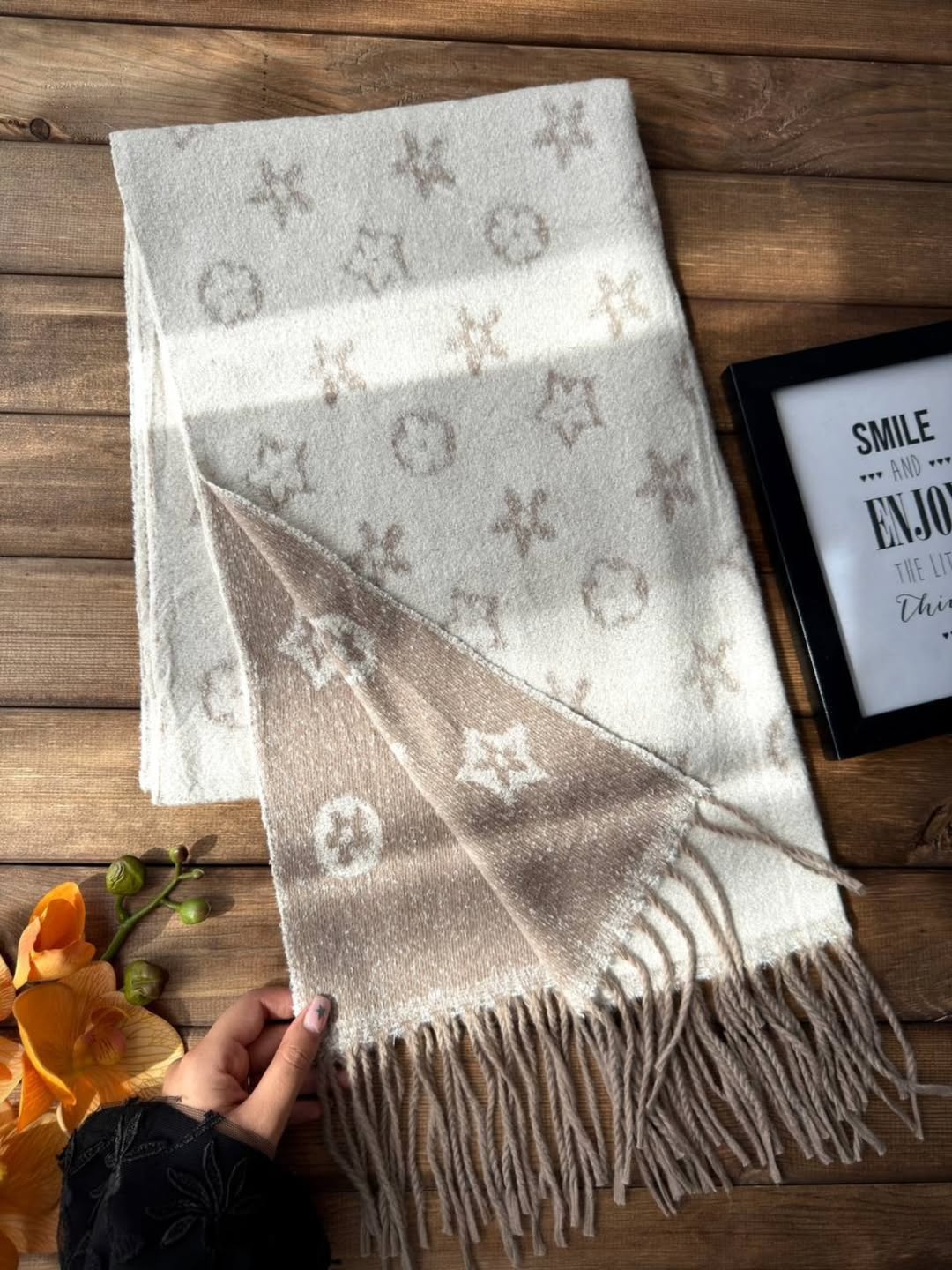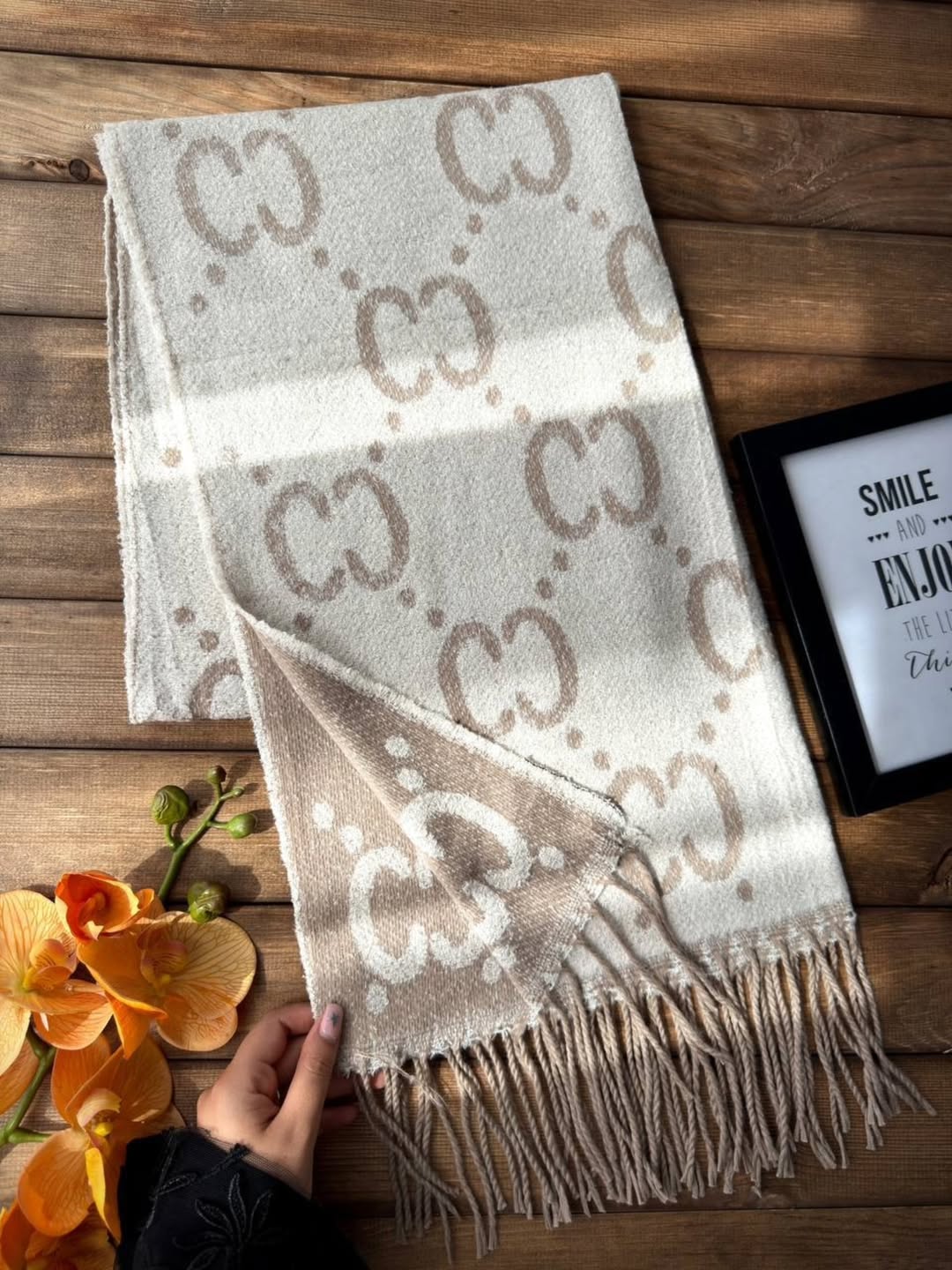 شال موهر طرح دار(کرم)