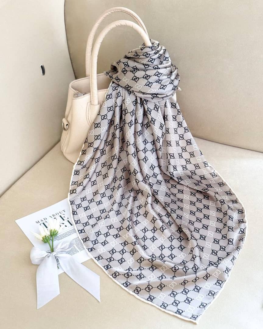 روسریهای چاپلوگو با جنس لطیف و جذاب، دقیقاً همون چیزیه که استایلتو خاص و شیک نشون میده! ترکیب رنگ خنثی و طرح مینیمال باعث میشه با هر استایلی ست شه؛ از استایل روزمره تا لاکچری و رسمی.