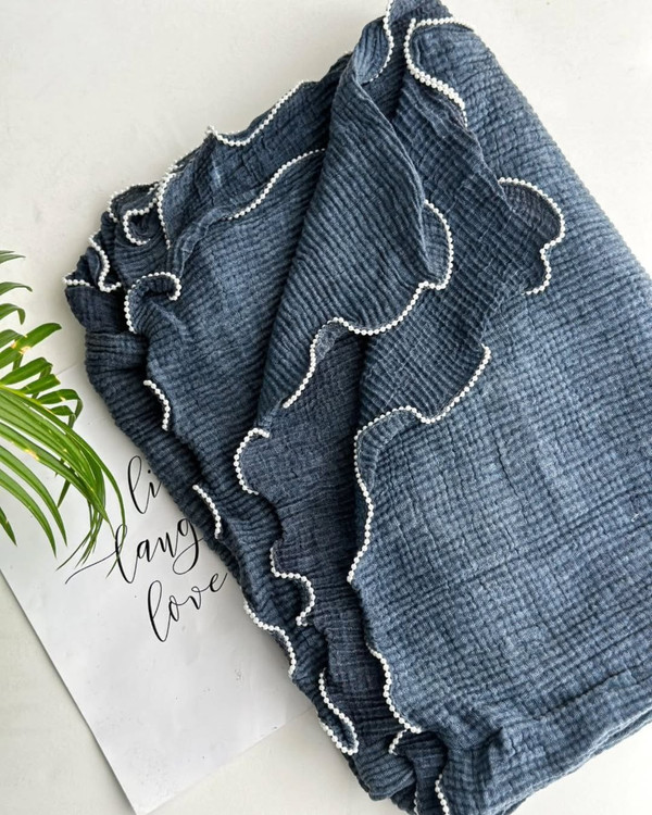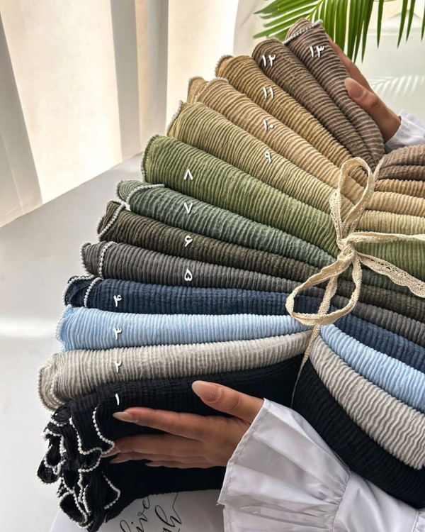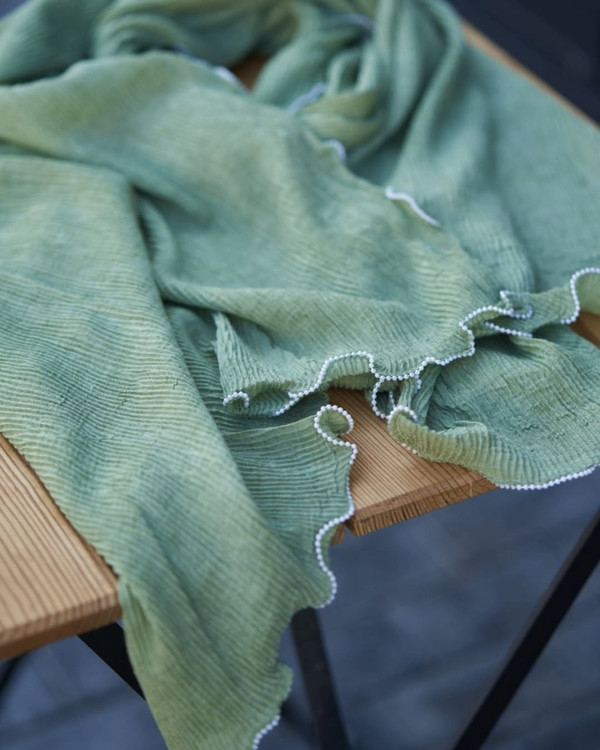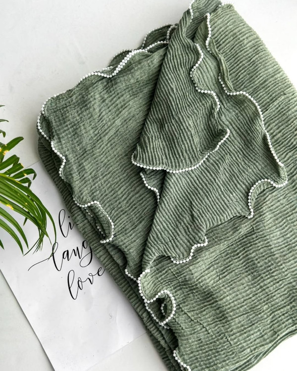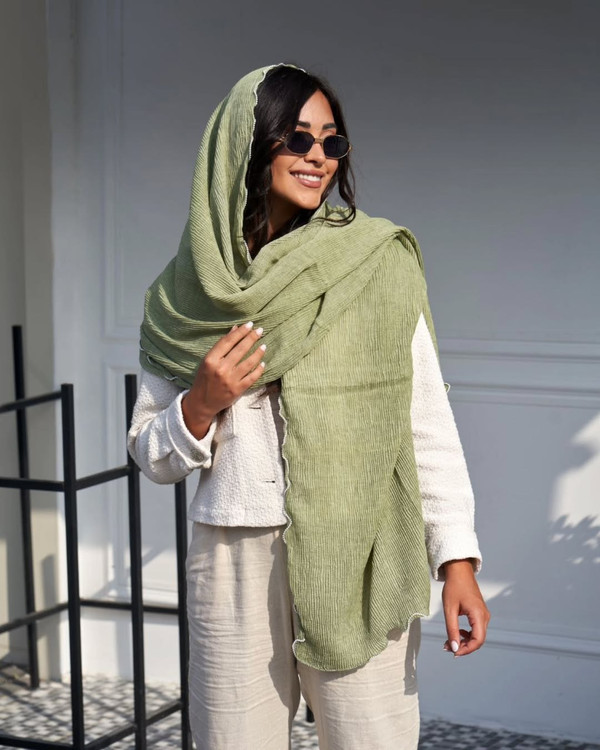 شال پاییزه سنگشور پلیسه با حاشیه مرواریدی