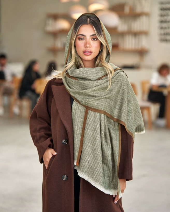 شال موهر طرح جناقی ریز با بافت خاص و لطیفش، ترکیب گرما و ظرافت پاییز و زمستونه.