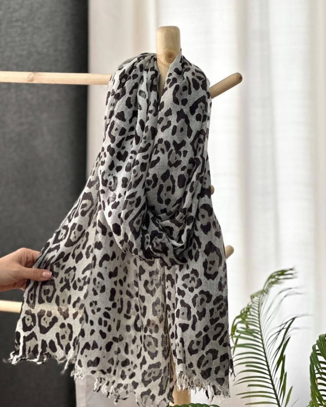 یه پلنگی جذاب و متفاوت با ترکیب رنگیه ماچا اگه دنبال یه شال سبک و خنک و طرح دار میگردی این مدل و از دست نده کیفیت بسیار عالی